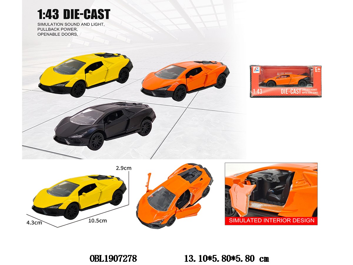 Home > Die-Cast Car > 1: 43 alloy regenerative door opening car with 3 colors mixed