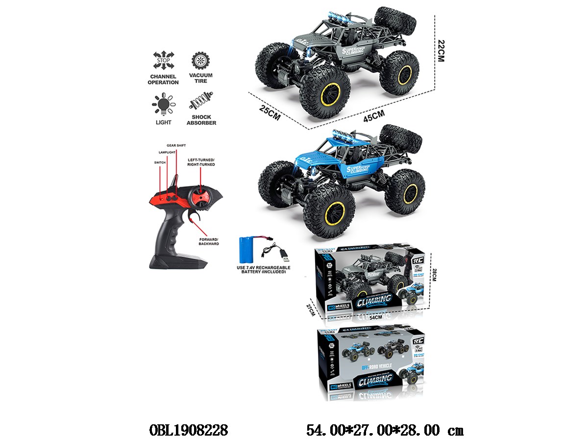 Home > R/C Car > 1: 8 4WD remote control climbing car with lights and USB cable, 7.4V lithium battery with built-in remote control, 2 * AA without built-in power, 2.4G frequency, 2-color hybrid