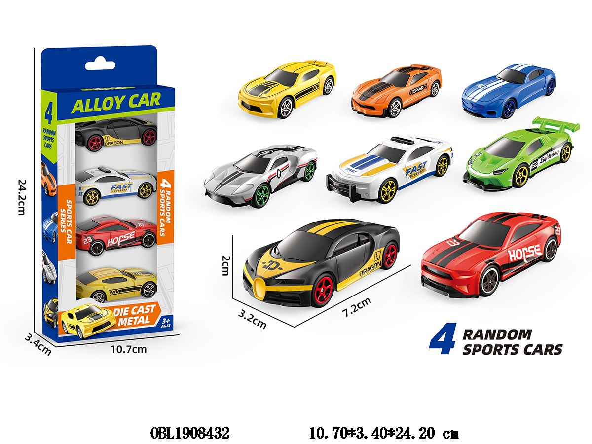 4-pack 1:64 sliding alloy car with 8 colors mixed