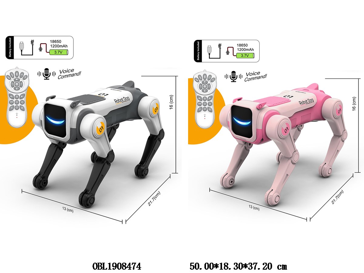 Chinese version of remote control AI stunt machine dog with music and voice control, equipped with USB cable, body 3.7V lithium battery included remote control, 2 * AAA non included 2.4G frequency, white/pink mixed
