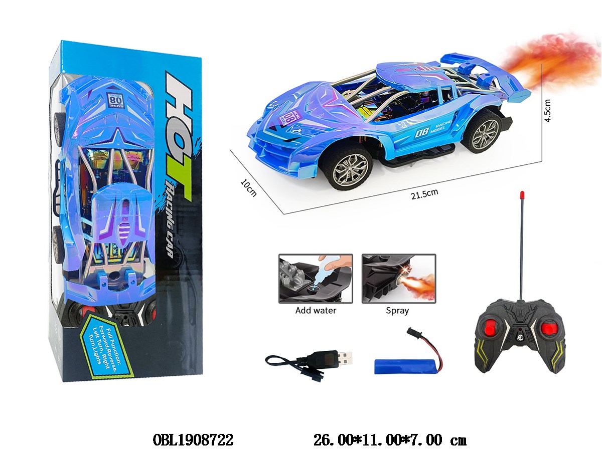 Home > R/C Car > Four way remote control vehicle with spray and USB cable body 3.7V lithium battery pack electric remote control 2 * AA non electric 27 frequency