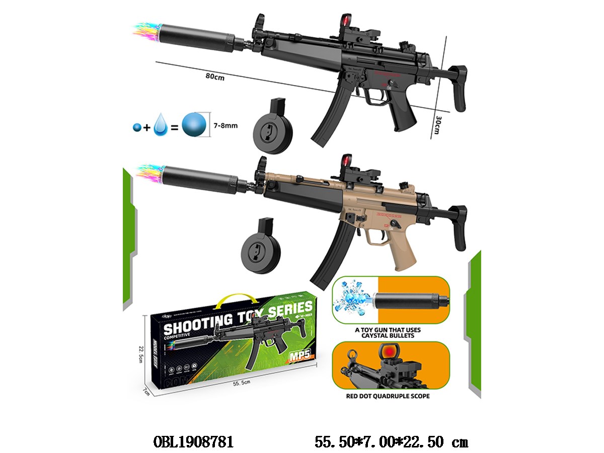 Home > Water Bomb Gun > Electric water bullet gun set with muffler/drum/clip and USB cable 7.4V lithium battery pack, 2-color mixed packaging