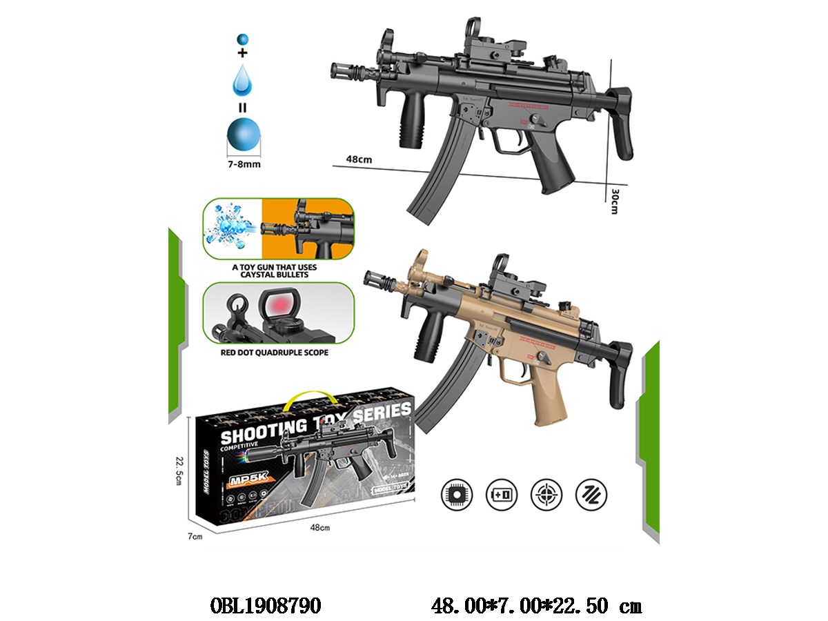 Electric water bullet gun set with USB cable 7.4V lithium battery pack, 2-color hybrid
