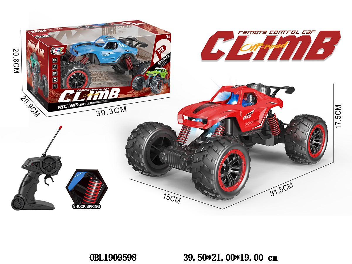 1: 12 Four way remote control climbing car with lights, body 3 * AA without power, remote control 2 * AA without power, 27 frequency, 2 color mixed design