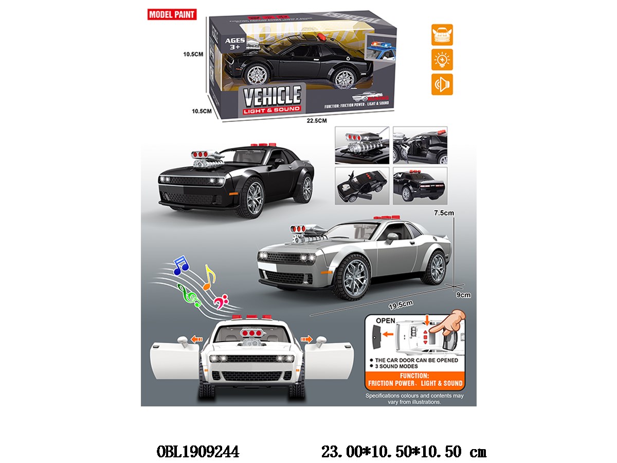 Inertial car with lighting and music, capable of opening doors, 3 * AG13, electric package, 3-color mixed design