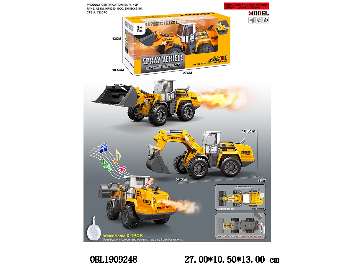 Inertia car with light, music, spray, 3 * AAA, mixed with 2 models without electricity