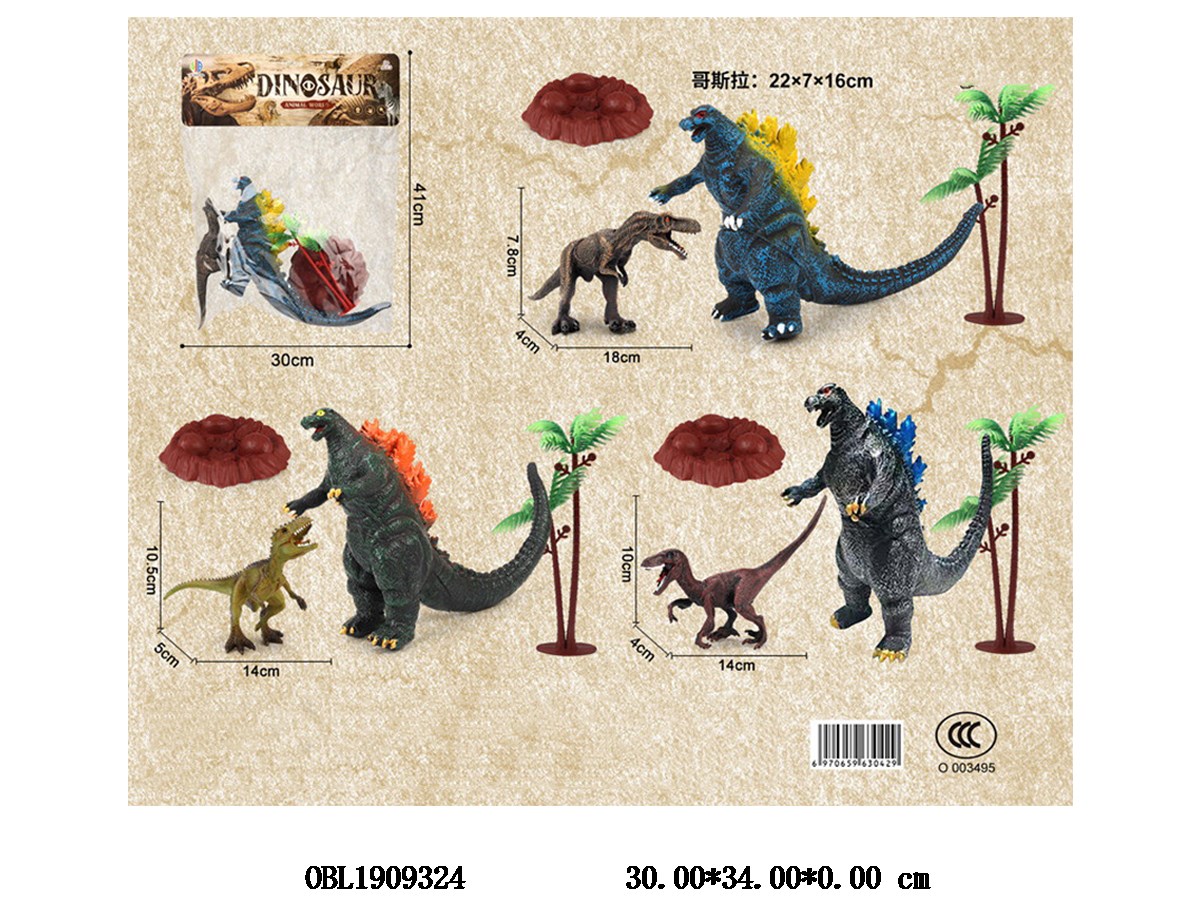 2 pieces of vinyl Godzilla/Dinosaur 3 mixed packaging