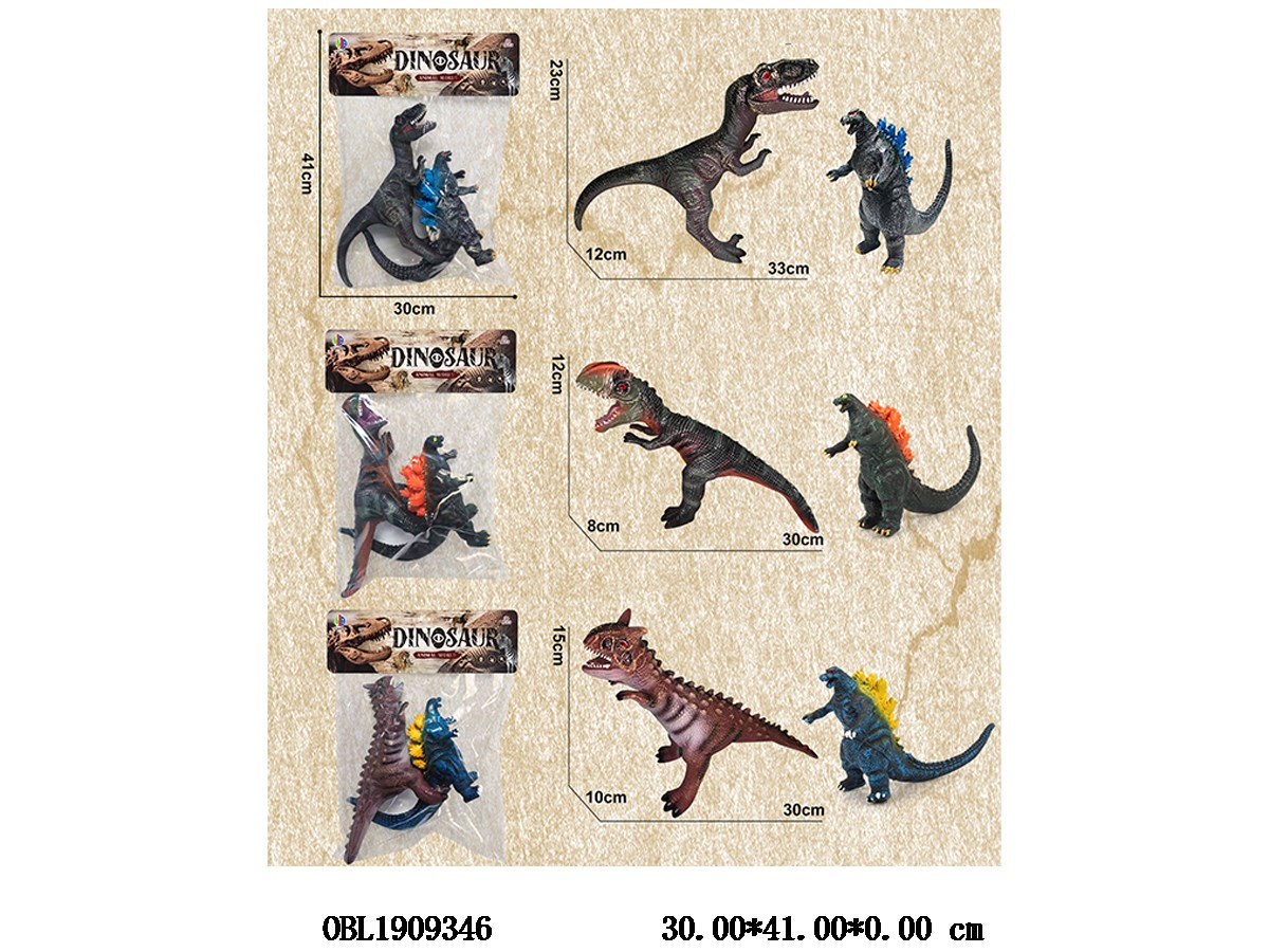 Home > Soft Plastic Animals > 2 pieces of vinyl dinosaur/Godzilla set, 3 mixed styles
