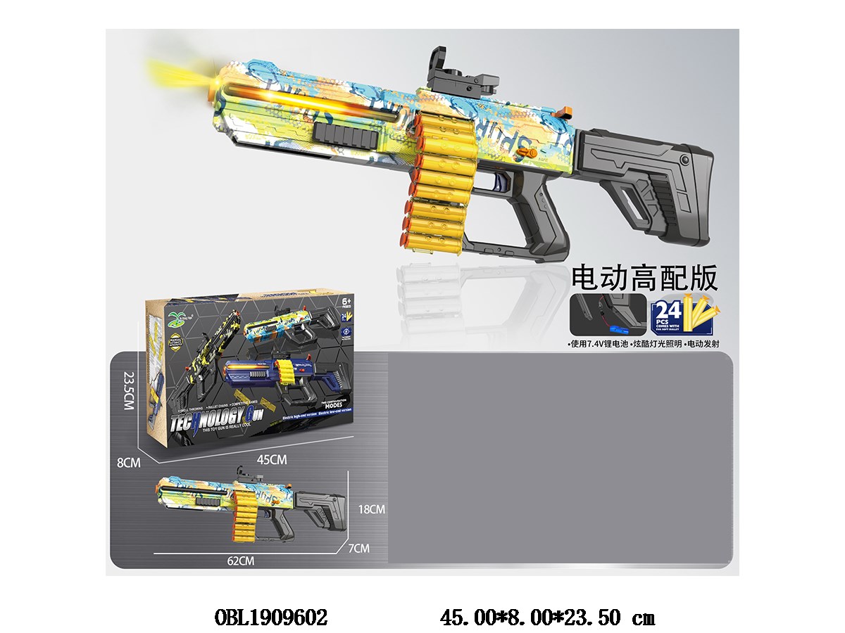 Hand to body electric shell throwing chain EVA soft bullet gun set with light sight and USB cable 7.4V lithium battery pack
