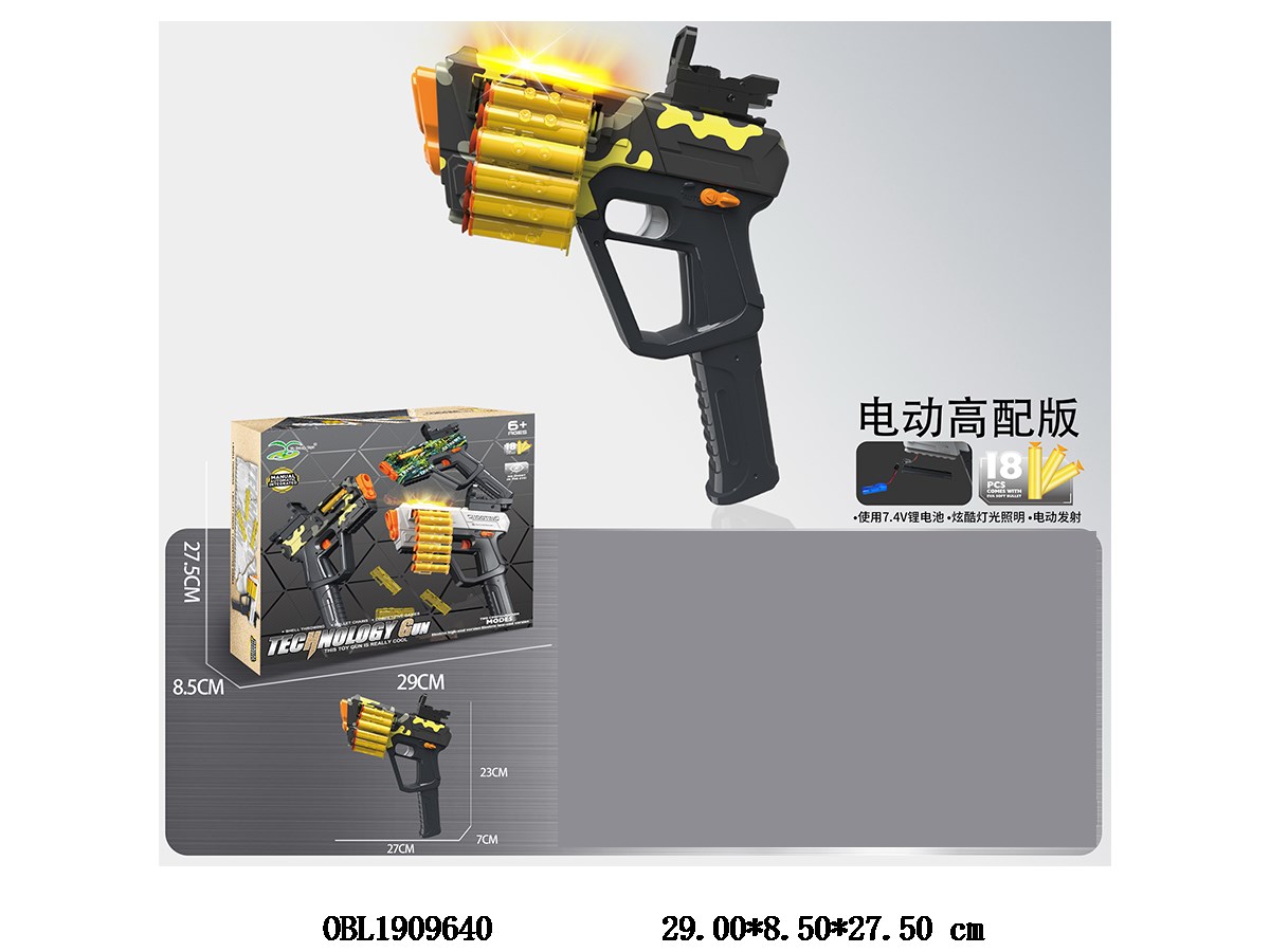 Hand to body electric shell throwing chain EVA soft bullet gun set with light sight and USB cable 7.4V lithium battery pack
