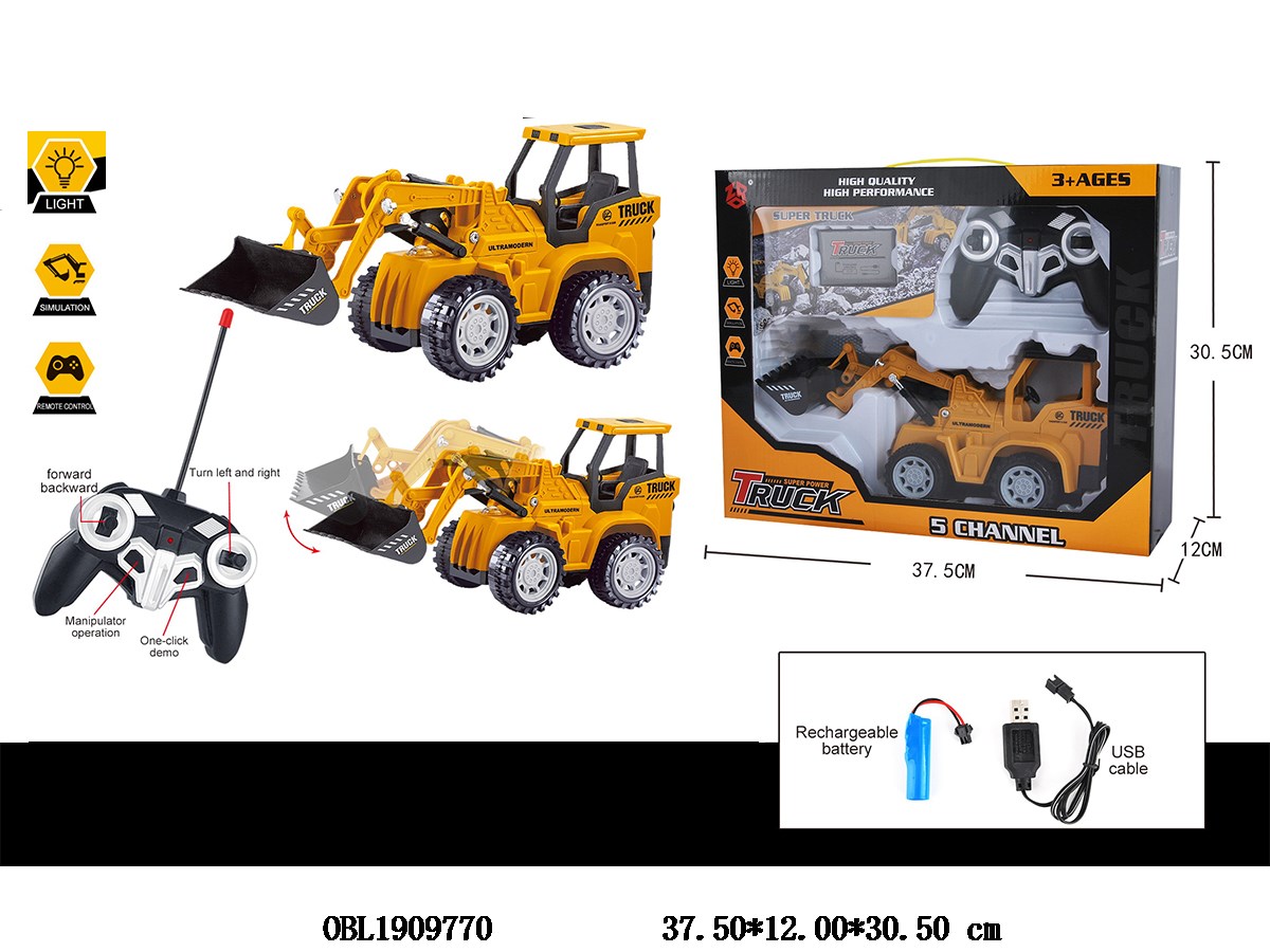Remote control bulldozer with USB cable, body 3.7V lithium battery, power included remote control 2 * AA, no power included