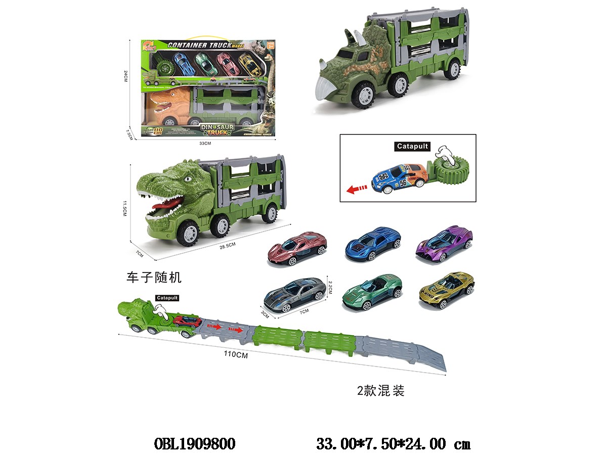 Sliding dinosaur car with 4 sliding cars, 1 catapult car, 3 color mixed car, 6 color mixed car