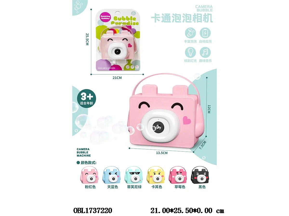 电动泡泡相机 配1瓶50ML泡泡水 2*AA不包电 6色混装