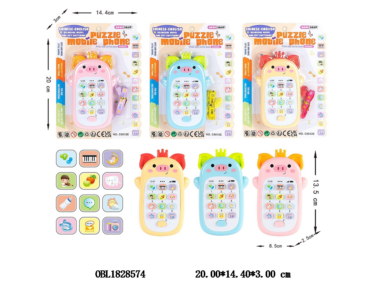 英文益智小猪手机带音乐 2*AAA不包电 3色混装