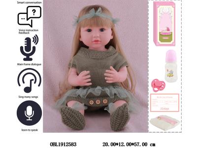 Home > Function Dolls > 21.5-inch vinyl high fidelity reincarnation doll set with wig cover, reproductive organ magnetic pacifier, intelligent dialogue and tongue learning function, 3 * AA non electric main body clothes, 1 style, 1 color